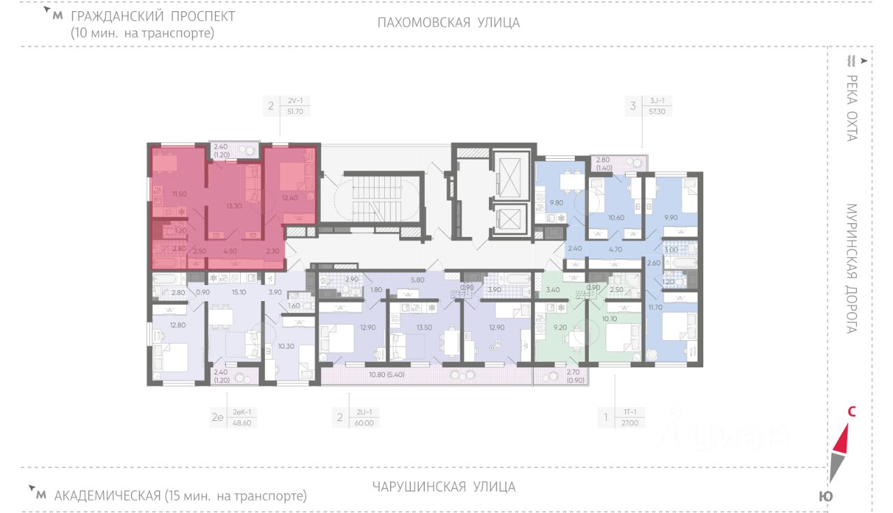 • 15 минут на авто до станций "Гражданский проспект" и "Академическая";