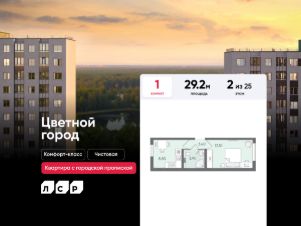 Продается 1-комнатная квартира в ЖК "Цветной город" на 2 этаже. Общая площадь составляет 29.20 кв. м. Квартира с чистовой отделкой Срок сдачи дома: 3 квартал 2026. Жилой комплекс "Цветной город" располагается по адресу Санкт-Петербург, Красногвардейский.