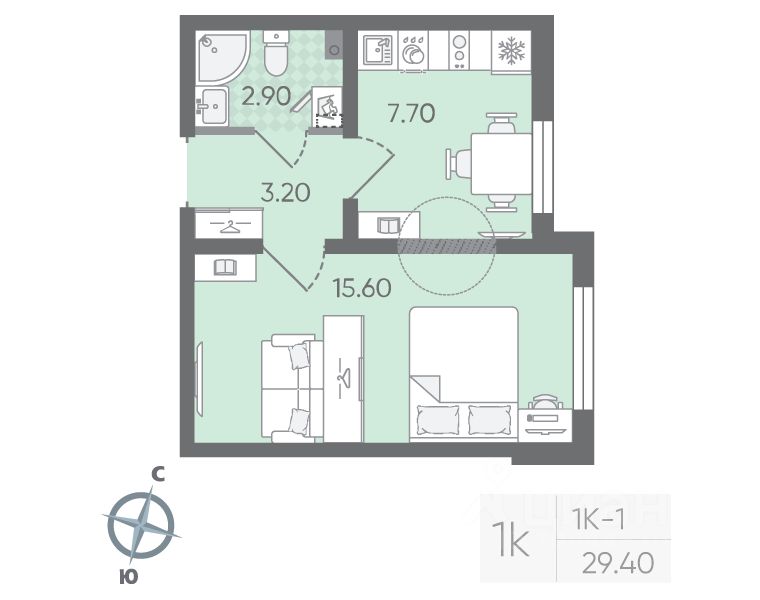 Продается 1-комнатная квартира в ЖК "Цветной город" на 2 этаже. Общая площадь составляет 29.40 кв. м. Квартира с чистовой отделкой  Срок сдачи дома: 3 квартал 2026. Жилой комплекс "Цветной город" располагается по адресу Санкт-Петербург, Красногвардейский.