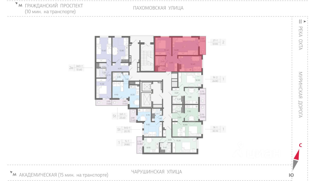 • 15 минут на авто до станций "Гражданский проспект" и "Академическая";