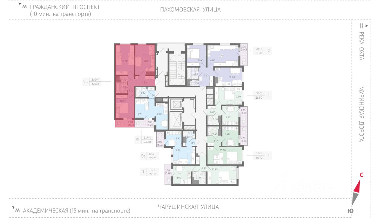 • 15 минут на авто до станций "Гражданский проспект" и "Академическая";