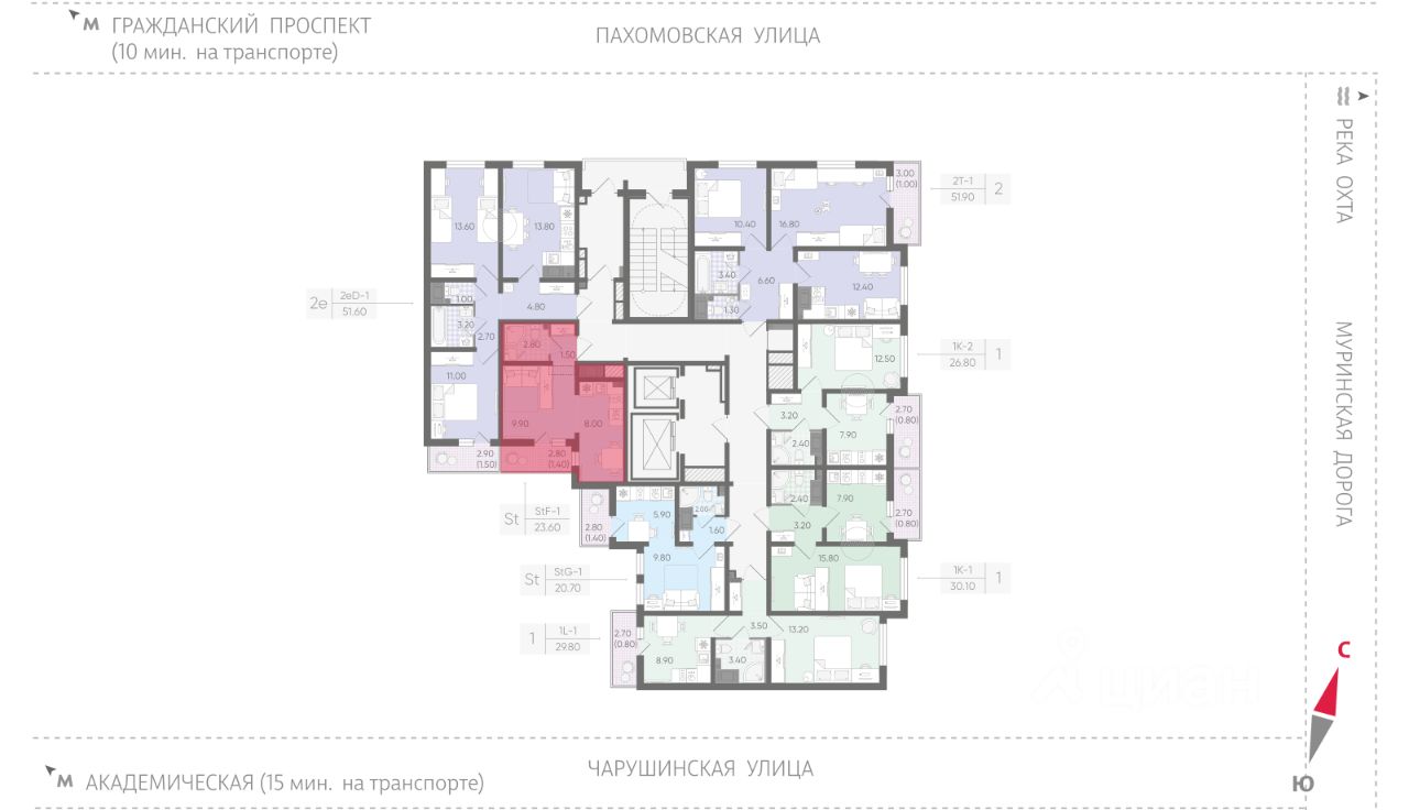 • 15 минут на авто до станций "Гражданский проспект" и "Академическая";