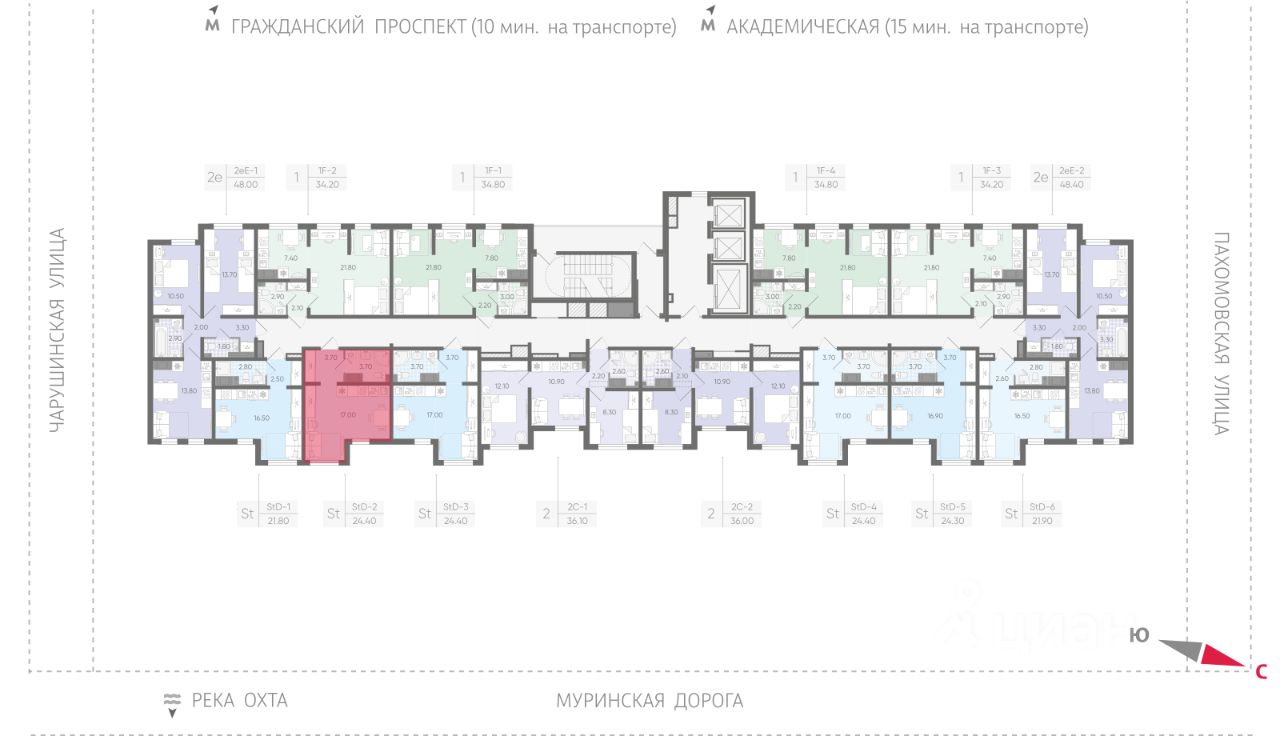 • 15 минут на авто до станций "Гражданский проспект" и "Академическая";
