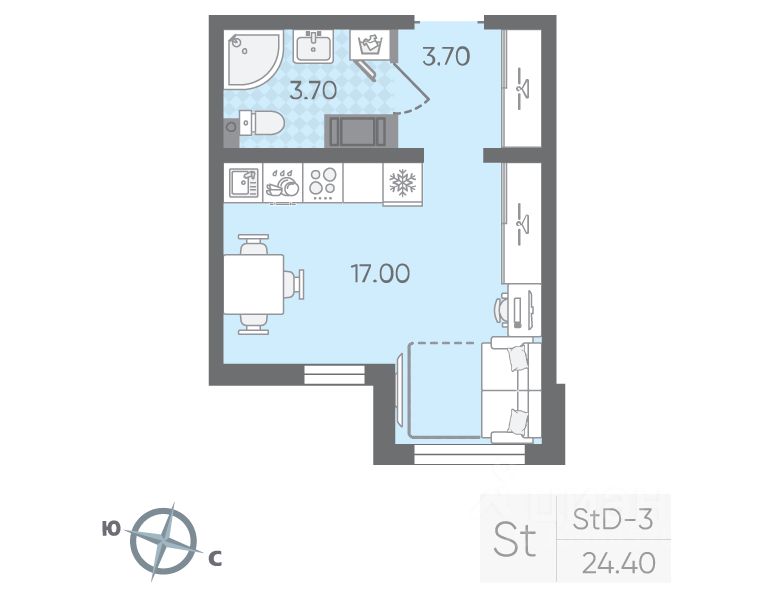 Продается студия в ЖК "Цветной город" на 5 этаже. Общая площадь составляет 24.40 кв. м. Квартира с чистовой отделкой Срок сдачи дома: 3 квартал 2026. Жилой комплекс "Цветной город" располагается по адресу Санкт-Петербург, Красногвардейский.