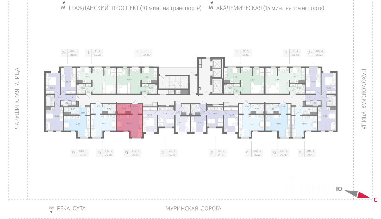 • 15 минут на авто до станций "Гражданский проспект" и "Академическая";