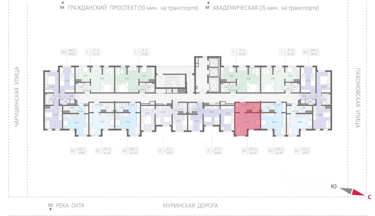 • 15 минут на авто до станций "Гражданский проспект" и "Академическая";