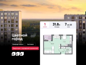 Продается 1-комнатная квартира в ЖК "Цветной город" на 7 этаже. Общая площадь составляет 31.80 кв. м. Квартира с чистовой отделкой Срок сдачи дома: 3 квартал 2026. Жилой комплекс "Цветной город" располагается по адресу Санкт-Петербург, Красногвардейский.