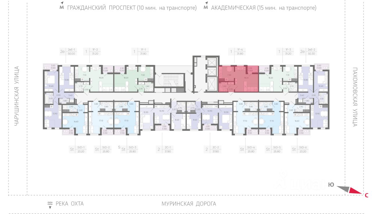 • 15 минут на авто до станций "Гражданский проспект" и "Академическая";