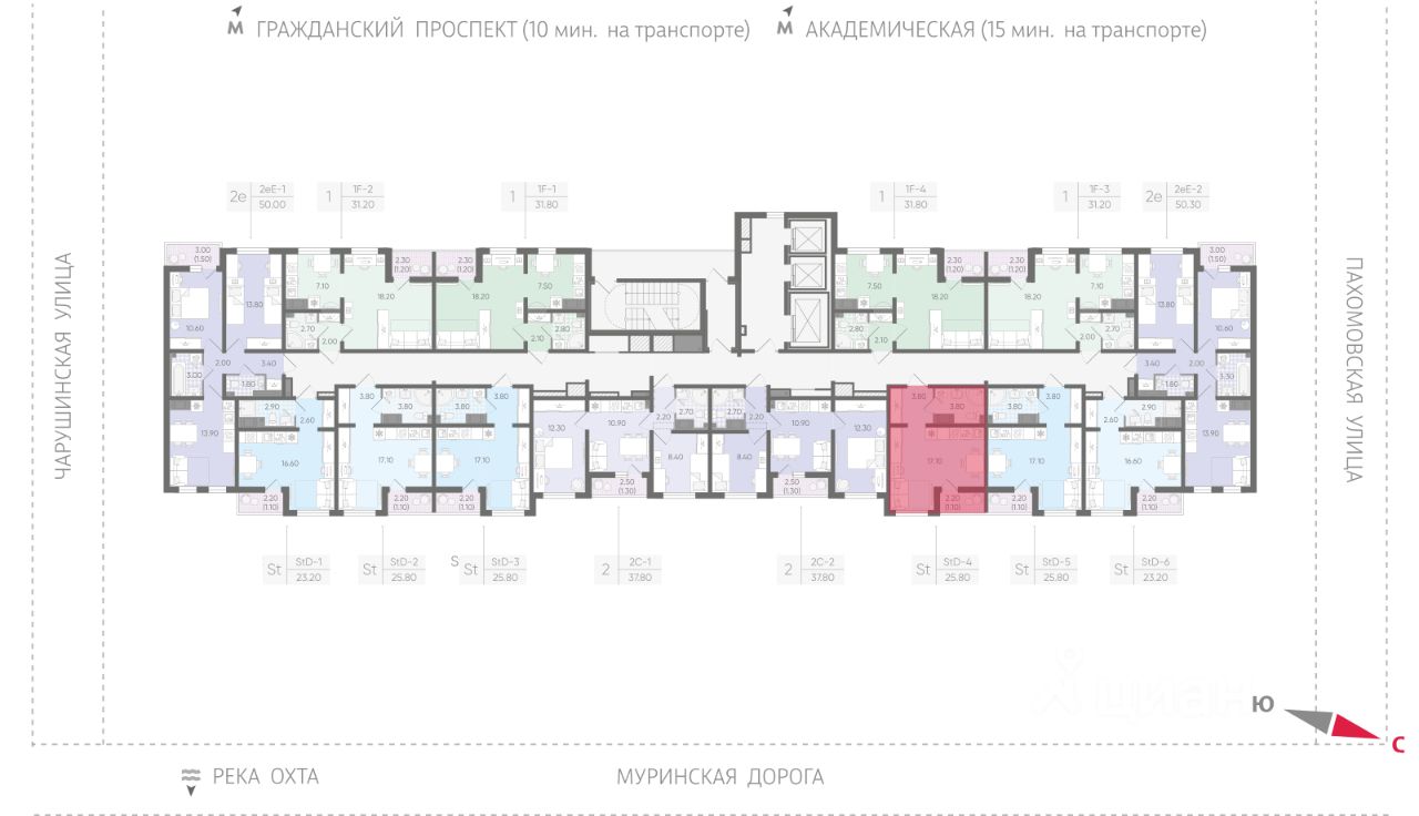 • 15 минут на авто до станций "Гражданский проспект" и "Академическая";