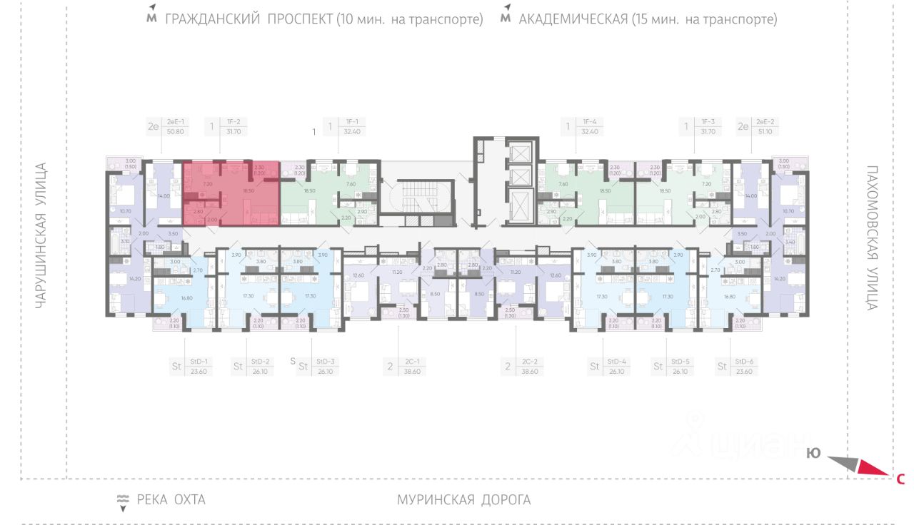 • 15 минут на авто до станций "Гражданский проспект" и "Академическая";