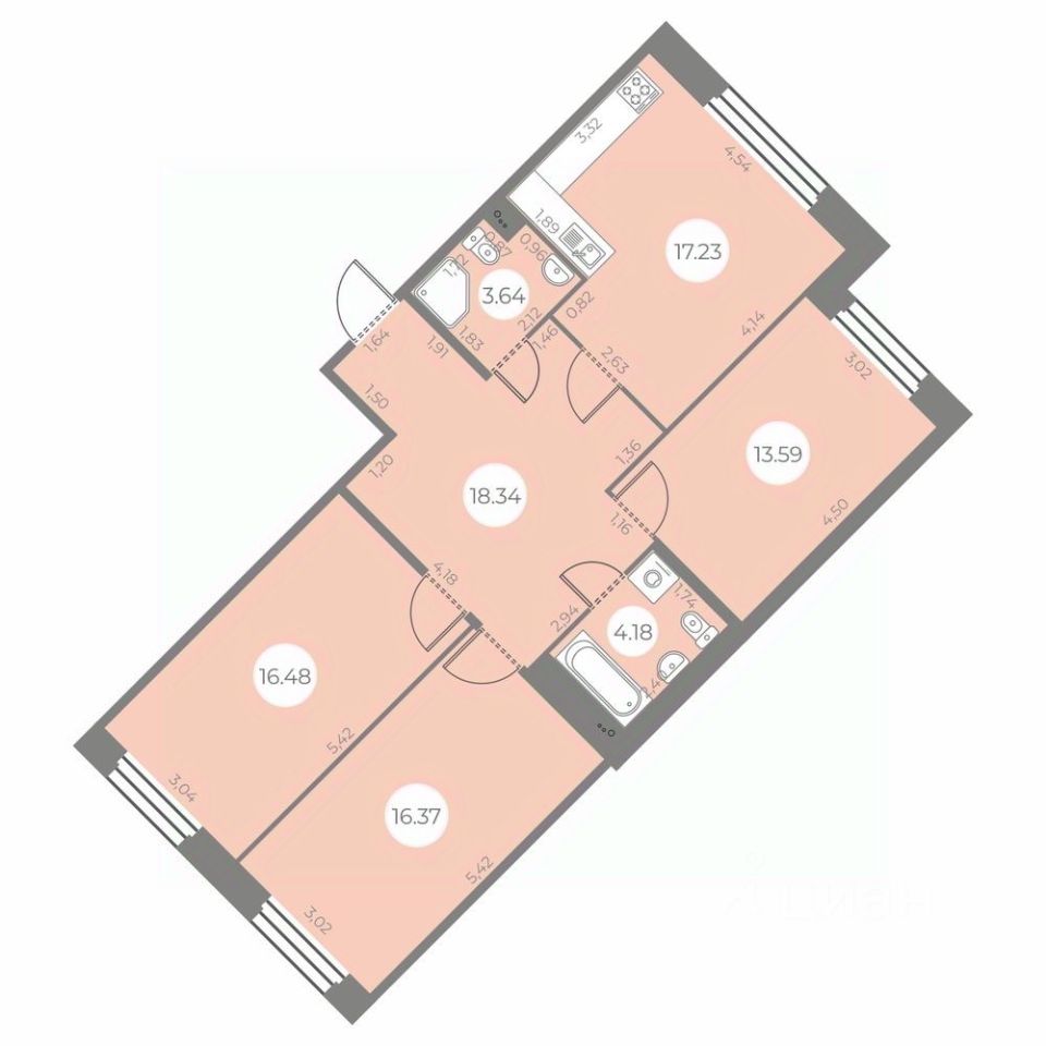 Площадь кухни17,2 м²