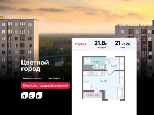 Продается студия в ЖК "Цветной город" на 21 этаже. Общая площадь составляет 21.80 кв. м. Квартира с чистовой отделкой Срок сдачи дома: 4 квартал 2025. Жилой комплекс "Цветной город" располагается по адресу Санкт-Петербург, Красногвардейский.