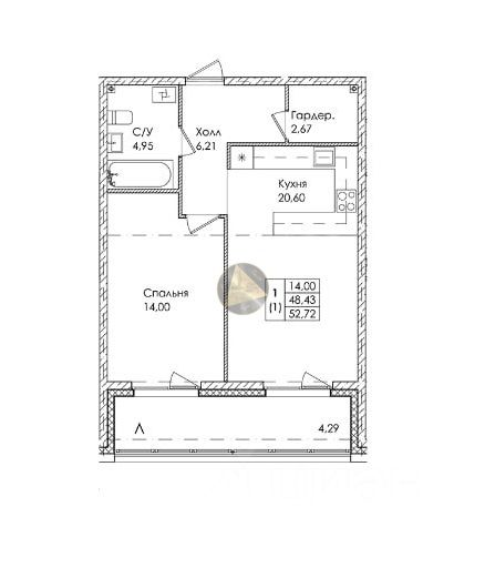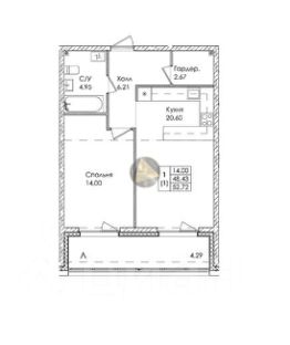 Общая площадь квартиры 48,43 м2