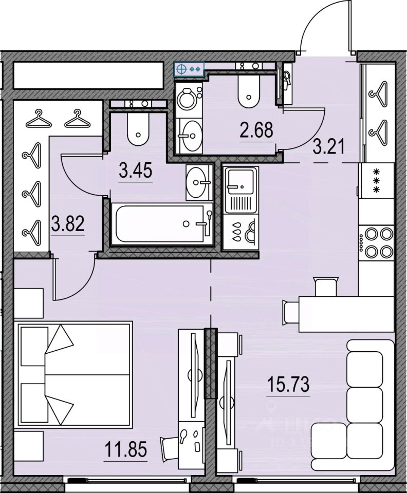 Продается однокомнатная квартира от застройщика с предчистовой отделкой в ЖК "Новая Земля" на 16 этаже. Общая площадь: 40.75 кв.м., жилая: 11.85 кв.м., площадь просторной кухни-столовой: 15.73 кв.м. Все окна выходят на одну сторону. В квартире один совмещенный и один раздельный санузел. Высота потолков 2.85 м.
