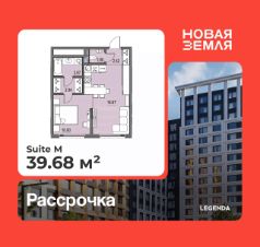 Продается 1-комн. квартира с предчистовой отделкой в ЖК "Новая Земля" на 5 этаже. Общая площадь: 39.68 кв.м., жилая: 10 кв.м., площадь просторной кухни-столовой: 18.87 кв.м. Все окна выходят на одну сторону. В квартире один раздельный санузел. Высота потолков 2.85 м.