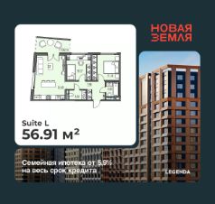 Продается двухкомнатная квартира с предчистовой отделкой в ЖК "Новая Земля" на 3 этаже. Общая площадь: 56.91 кв.м., жилая: 21.29 кв.м., площадь просторной кухни-столовой: 21.4 кв.м. Квартира угловая, идеально подойдет любителям тишины и панорамных видов. В квартире один балкон, один совмещенный и один раздельный санузел. Терраса представляет собой роскошную зону отдыха для проведение вечеров в кругу семьи и друзей или организация вечеринок. Высота потолков 2.85 м.