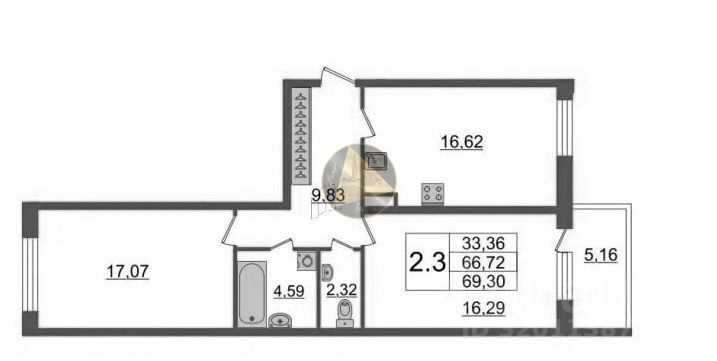 - Общая площадь квартиры 66,72 м2