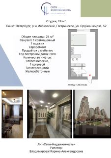 Продается видовая уютная студия в ЖК "Звездный"