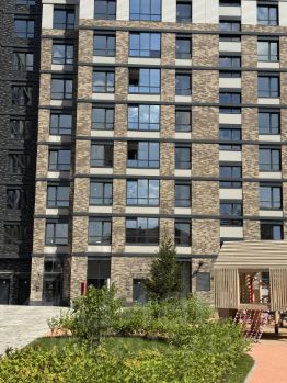 Уникальный фасад здания с облицовочным кирпичом, под мрамор и стильными колоннами с акцентными латунными вставками. Также в декоре присутствуют потрясающие настенные панели под светлый оникс, с подсветкой, которая восхищает красотой, особенно в вечером!
