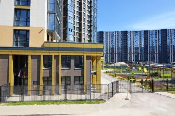 Квартира расположена на 9 этаже 18-этажного дома, окна спальни и лоджия кухни-гостиной выходят на бульвар, где сейчас оформляется зелёная прогулочная зона с игровыми и спортивными площадками, беговыми и велодорожками и ландшафтном дизайном. Прямо во дворе находятся школа и детский сад.