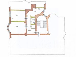Общая площадь квартиры 76,8 кв.м, комнаты 25,6 кв.м и 19,7 кв.м, кухня 13 кв.м, коридор 13 кв.м, высота потолков 2,95 м.
