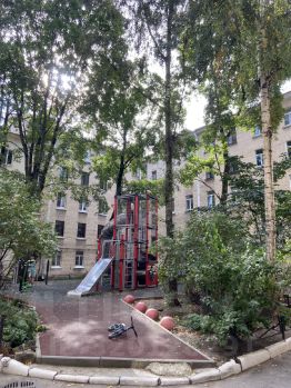 Просторная, теплая и светлая комната с двумя окнами во двор и высокими потолками. Средний этаж. Закрытый вход во двор через арку.