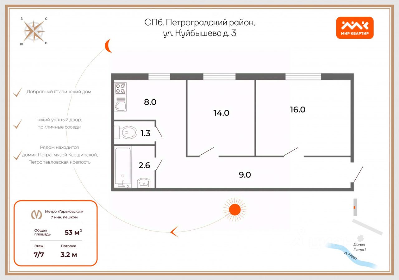 Арт. 110471074 Светлая уютная *Сталинка* в сердце Петербурга ваш идеальный дом!