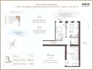 До станции метро "Василеостровская" — 7 минут пешком. Разнообразный наземный транспорт во все части города, удобный выезд на ЗСД. До аэропорта Пулково — 25 минут на автомобиле.