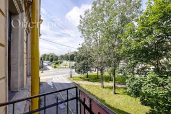 Окна выходят на солнечную сторону — на сквер перед Большим проспектом, что создаёт приятную атмосферу и обеспечивает хорошее естественное освещение в течение дня.