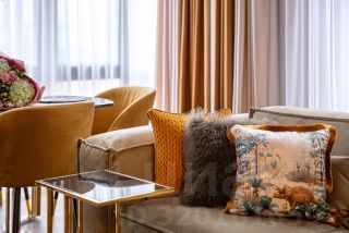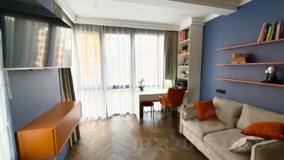 над проектом квартиры трудился овый дизайнер. Использованы материалы исключительного качества. Вся лепнина Orac, паркет высокого класса, увеличенные дверные проемы с дверями скрытого монтажа. Стеновые панели из натурального шпона. Кондеи в каждой комнате, мягкая мебель SK desighn и Garda Decor. Детская кровать заказана по индивидуальному эскизу у компании,которая занимается отельными интерьерами.