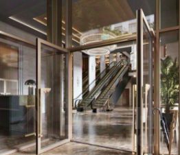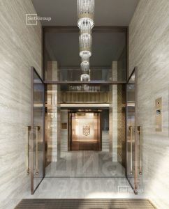 Двухуровневые входные группы с ресепшеном и зоной консьерж-сервиса создают атмосферу премиального отеля