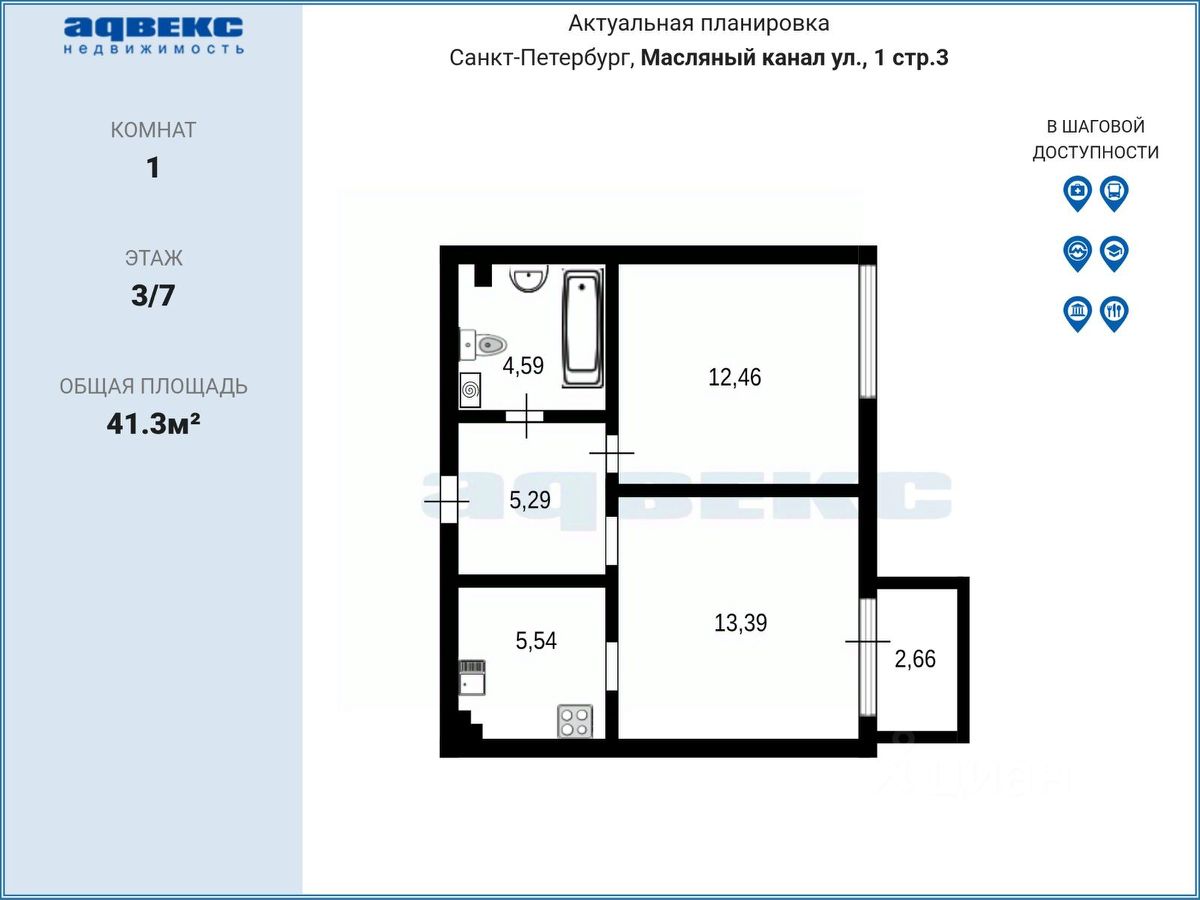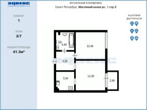 В продаже просторная 1-комнатная квартира 41,8 м. с увеличенной кухонной зоной (18,9 м.) в клубном доме малой этажности (всего 7 уровней). Уникальное сочетание камерности премиального жилья и панорамных видов на Неву