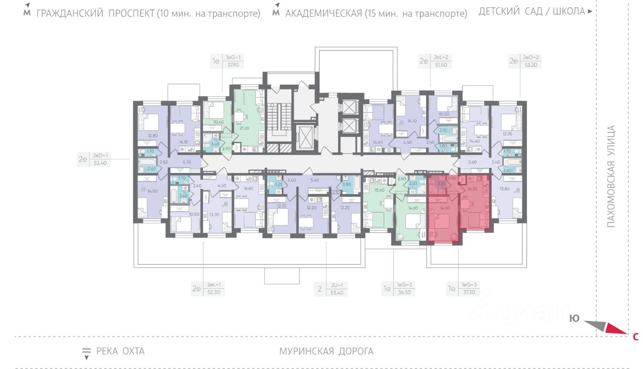 • 15 минут на авто до станций "Гражданский проспект" и "Академическая";