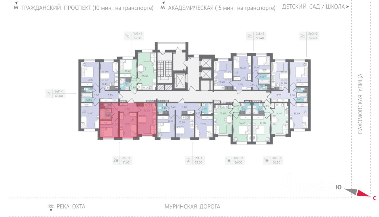 • 15 минут на авто до станций "Гражданский проспект" и "Академическая";