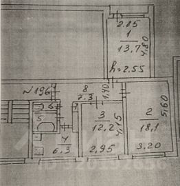 Площадь: 58 кв.м. без учета санузла, прихожая 8 кв.м., кухня 6.3 кв.м., комнаты: 12.2 кв.м, 18.1 кв.м и 13.7 кв.м. (план на фото).