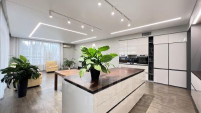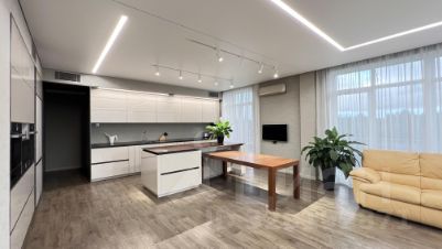 Простор и свет: Кухня-гостиная 70 м² с выходом на террасу. Большие панорамные окна. Продуманная планировка с возможностью зонирования.