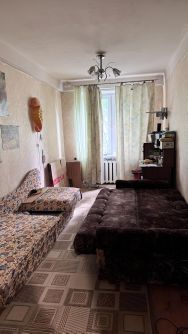 Квартира трехкомнатная. В третьей комнате живет одинокая женщина.Окна одной комнаты выходят на детскую площадку. В ней также находится открытый балкон. Окна второй комнаты выходят на маленький переулок между домами.