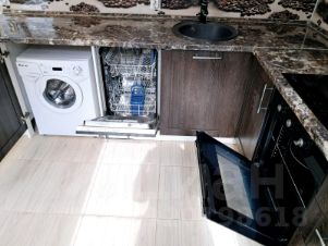 Кухонный гарнитур, со встроенной посудомоечной машиной, стиральной машиной, холодильником и угловым диваном остаётся