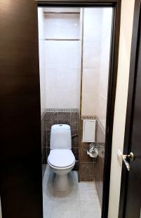 Большая ванная комната и туалет отделаны плиткой.