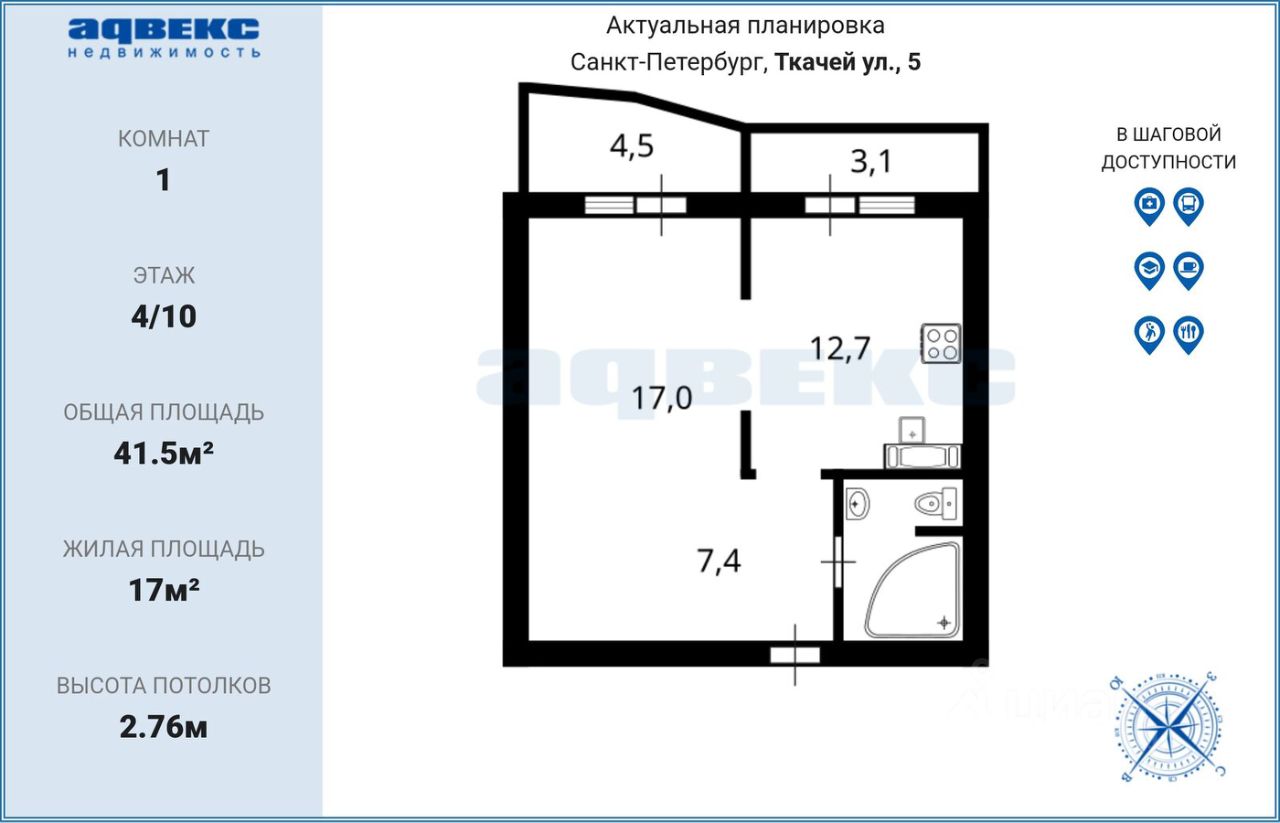 * Простор и функциональность: Общая площадь 41.5 кв.м., включая: