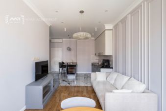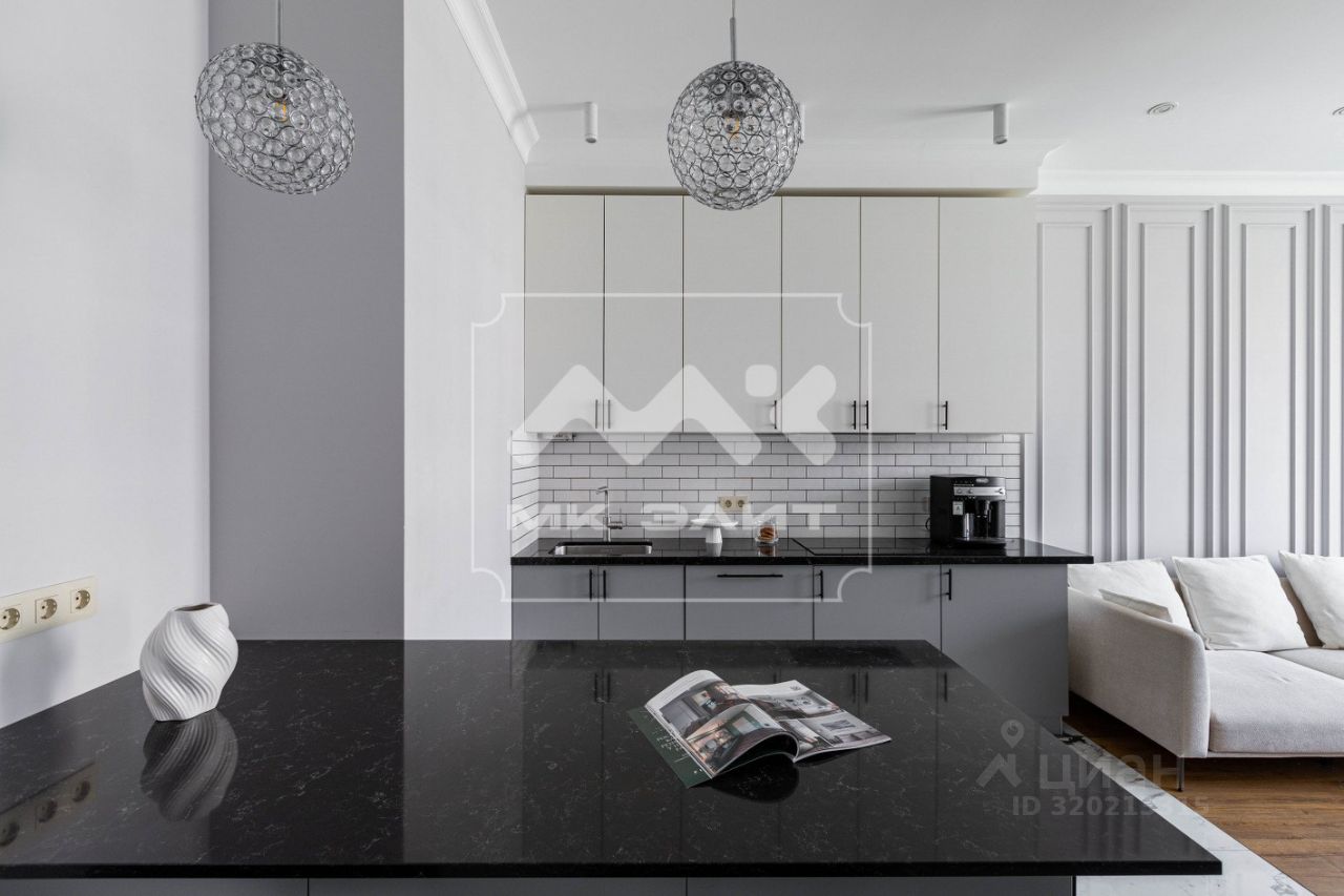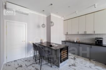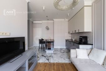 В квартире выполнен свежий ремонт по дизайн-проекту, использовались качественные материалы, мебель и техника европейских брендов. Дорогое освещение - тоже Европа, много сценариев. Краска Англия, молдинги и плинтуса Orac, паркет, керамогранит. Предусмотрена вся необходимая встроенная техника (Bosh, Libherr), а так же - кондиционер, стиральная и сушильная машины, большие блоки холодильной и морозильной камер, винный шкаф. Встроенный кухонный гарнитур по индивидуальному заказу.
