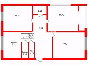 Все комнаты хорошего, не маленького метража 14,5, 17 и 17 метров. Одна из комнат имеет 2 больших окна и является самой светлой, со встроенной и оборудованной лоджией. Меблированные. Почти вся мебель входит в стоимость квартиры. Кухня 7,7 метров с просторным выходом в коридор, поэтому нет ощущения маленькой кухни. Коридор удобный, с большой нишей под шкаф-купе и отдельной зоной для обуви. Имеется хорошая кладовая, которую можно переоборудовать в гардеробную. Санузел раздельный, вся сантехника и трубы новые. Во всей квартире чувствуется простор и продуманная функциональность всех помещений от застройщика. Сейчас таких планировок не строят, к сожалению.