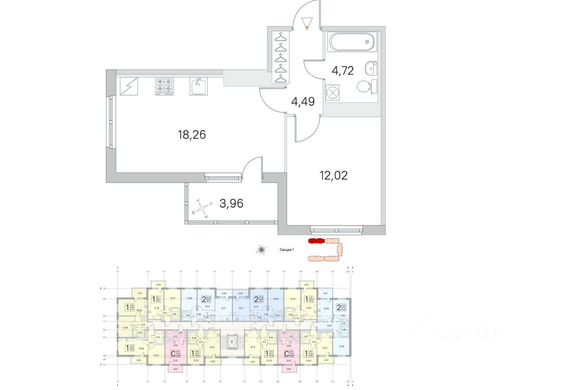 Квартира с кухней-гостиной 18,26 м².