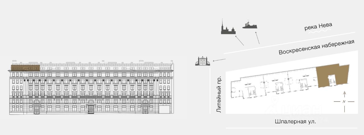 Уникальное расположение. Удобное расположение комплекса позволяет быстро добраться до Таврического сада, Смольного собора, Марсова поля и Летнего сада. Из окон открывается эксклюзивный вид на Литейный мост, акваторию Невы и разводные мосты — редкое сочетание исторического центра и уединения.