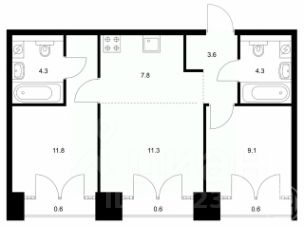 В квартире 2 санузла по 4,3 м2 .