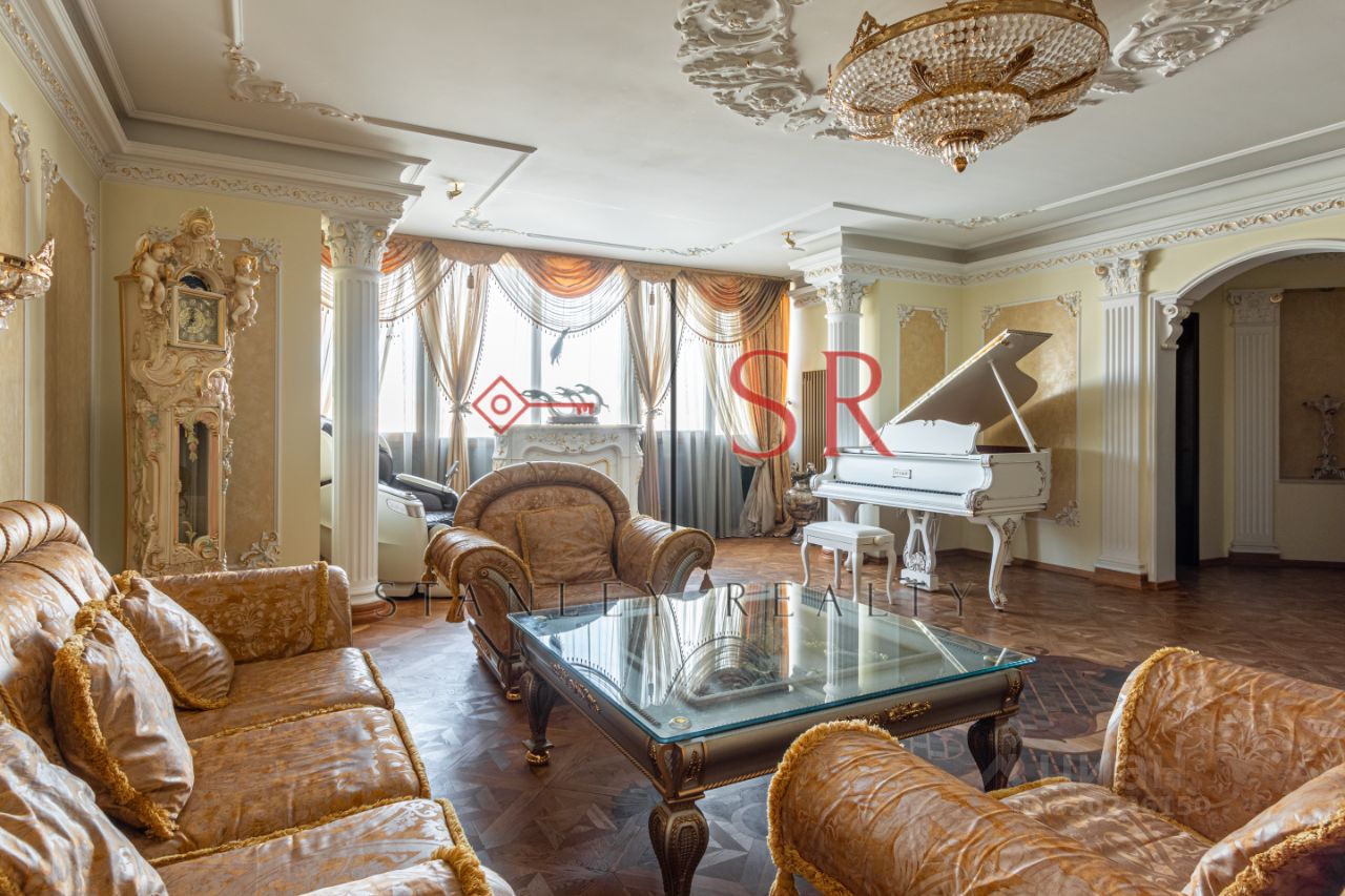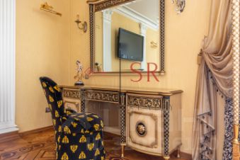 Квартира выполнена в классическом стиле с использованием дизайнерских материалов и мебели от Gianni Versace.