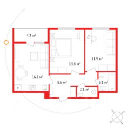Просторные раздельные комнаты: 13,8 и 11,9 м²