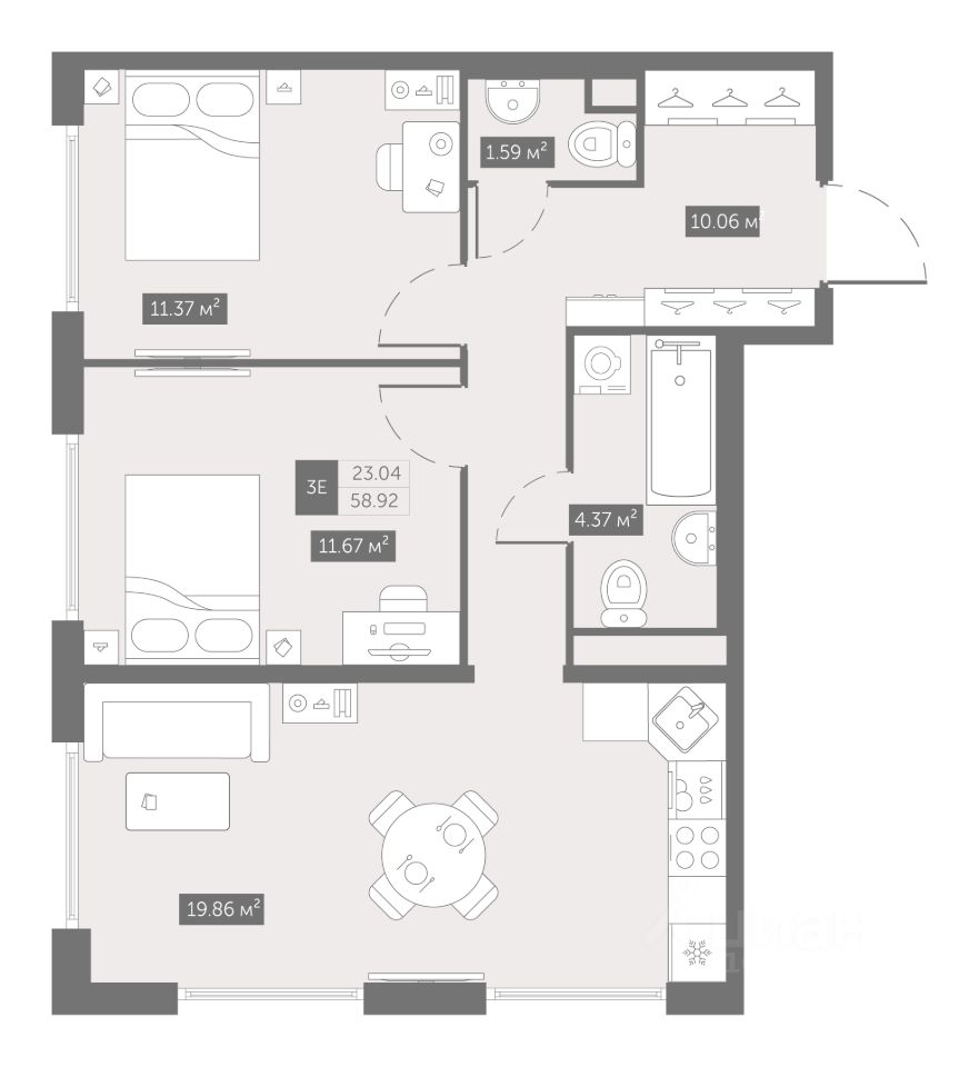 Цена со скидкой до 30% в прямой продаже от застройщика — только в этом месяце. Беспроцентная рассрочка. 2-к квартира в ЖК Up-квартал "Новый Московский" на 2-м этаже. Общая площадь 58,92. Без отделки.