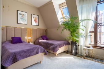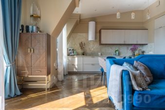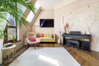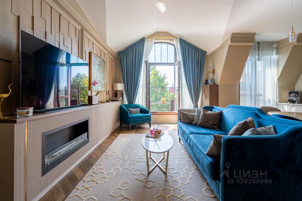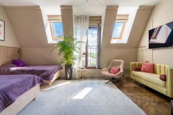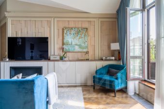 В квартире — панорамные и мансардные окна, благодаря которым помещения наполнены естественным светом в течение всего дня.