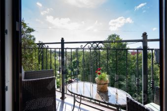 Окна выходят на малоэтажную застройку, а вокруг — зелень, тишина и приватная городская среда без визуального шума.
